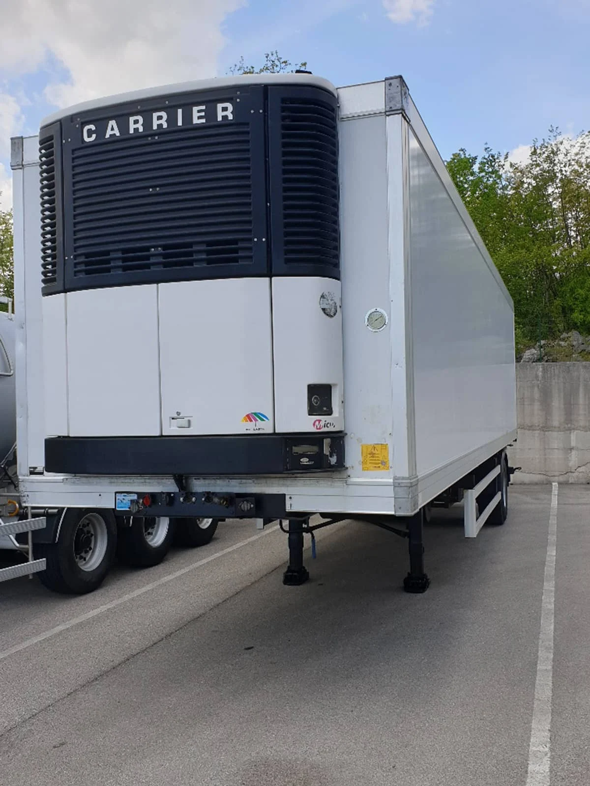 Poluprikolica hladnjača idealna za dostave i/ili kao skladišni prostor! Nosivost 8.000 kg, 1 osovina BPW (zakretna), obnovljene kočnice i ležajevi, ABS, agregat za hlađenje Carrier Vector (servisiran), stražnja utovarno/istovarna sklopiva rampa nosivosti 1,5 tona.